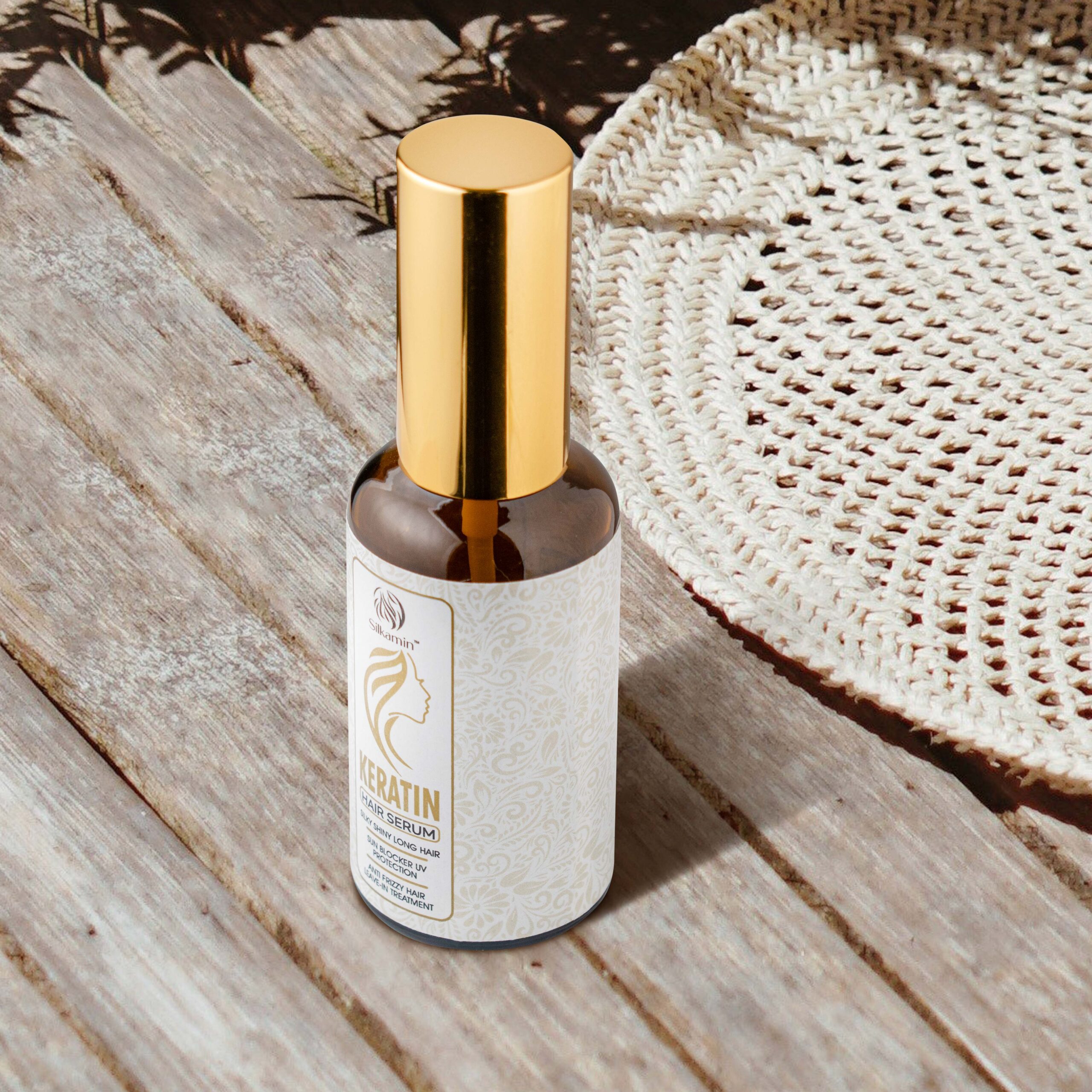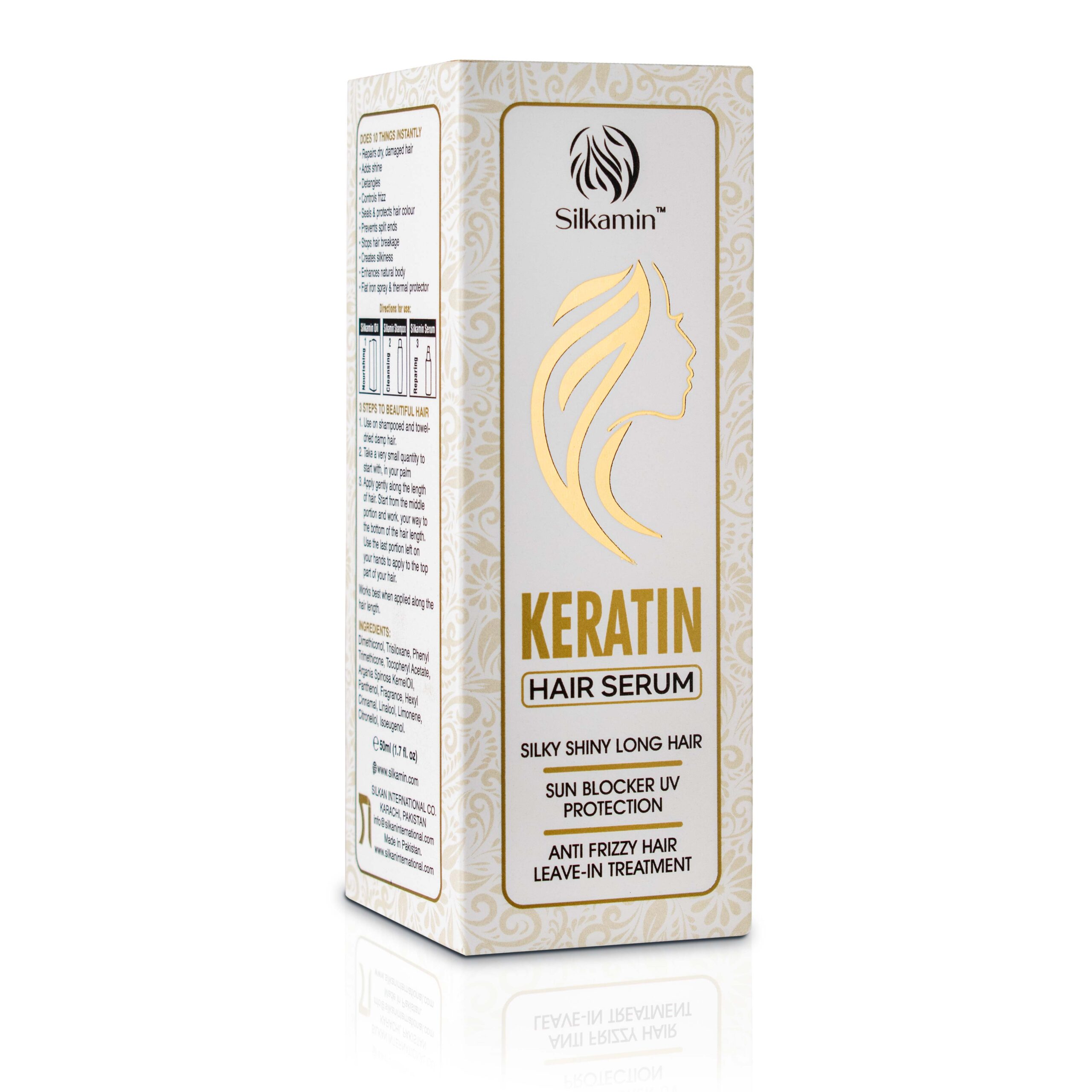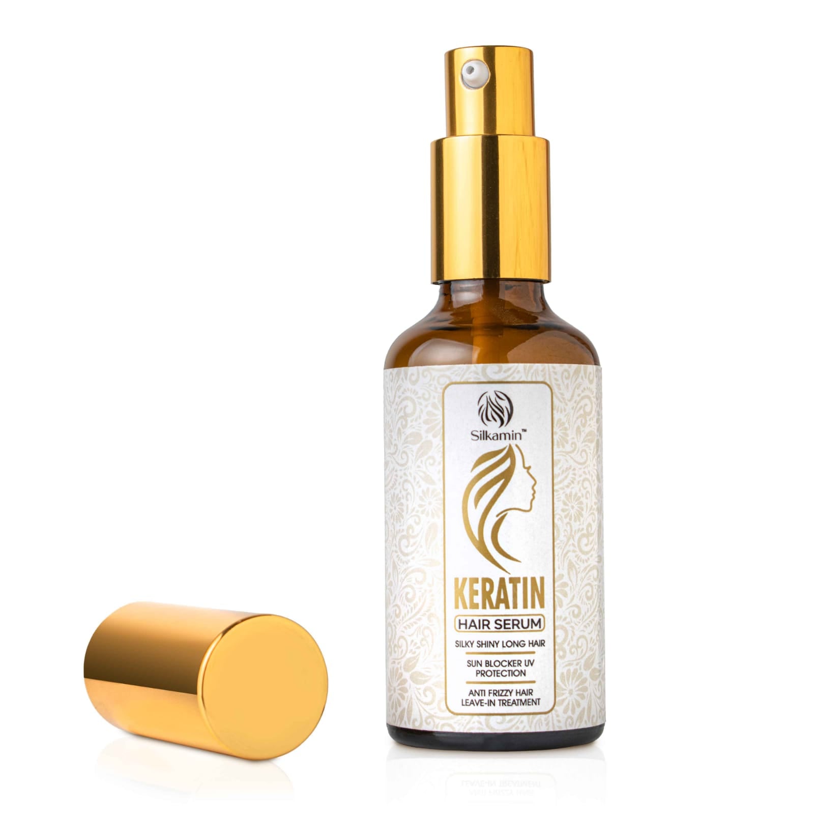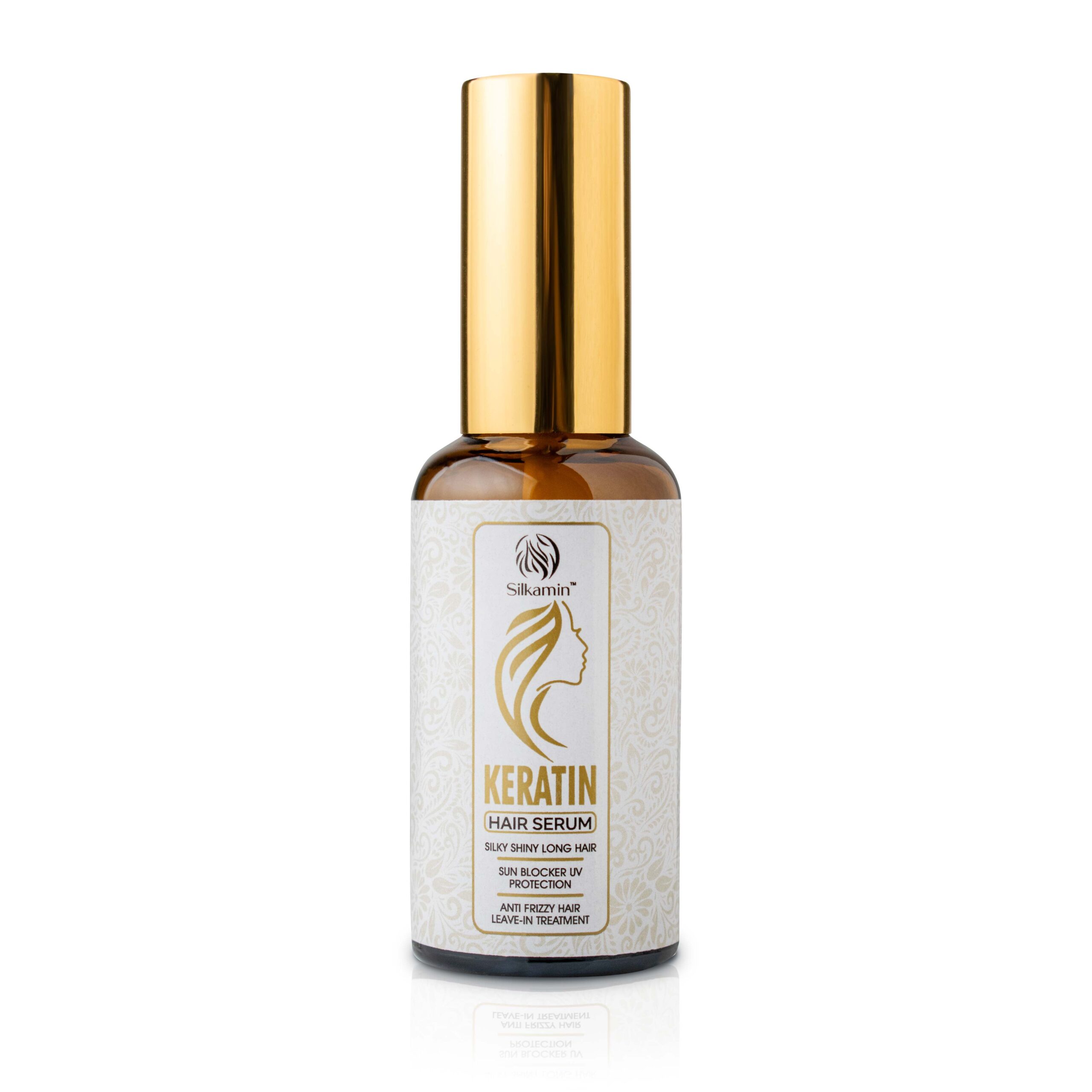 Silkamin’s Keratin hair serum is infused with Argan Oil for application on dry hair. It contains a unique blend of nutrients, including Vitamin E, Vitamin B5, and Argan Oil, among others. These ingredients work together to nourish, hydrate, and accelerate the hair growth cycle, leaving your hair feeling soft, smooth, silky, healthier, and more vibrant. The serum helps repair damage caused by chemical treatments and provides defense against UV radiation, heat, frizz, dryness, and brittleness. Additionally, it improves the sheen, strength, and elasticity of your hair.