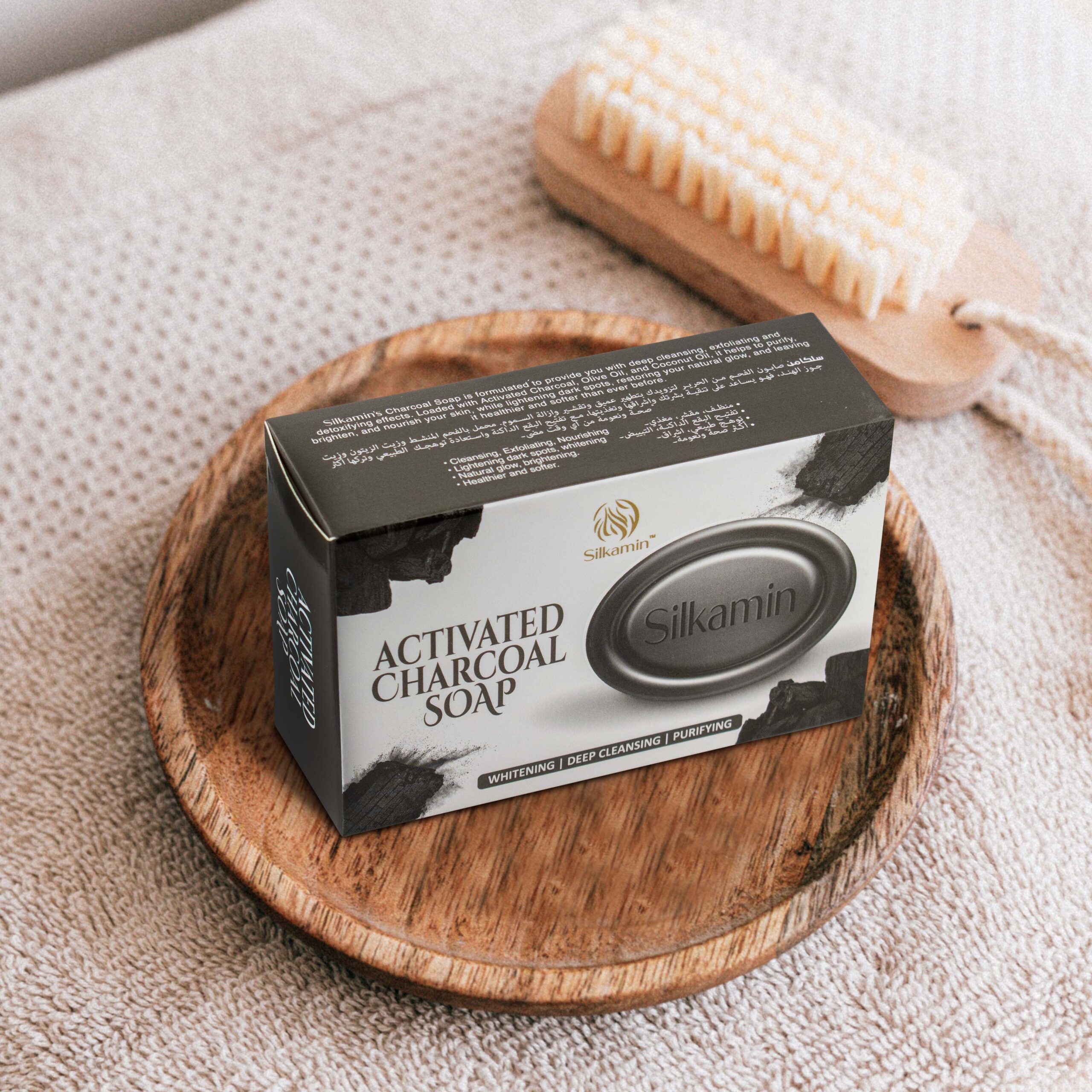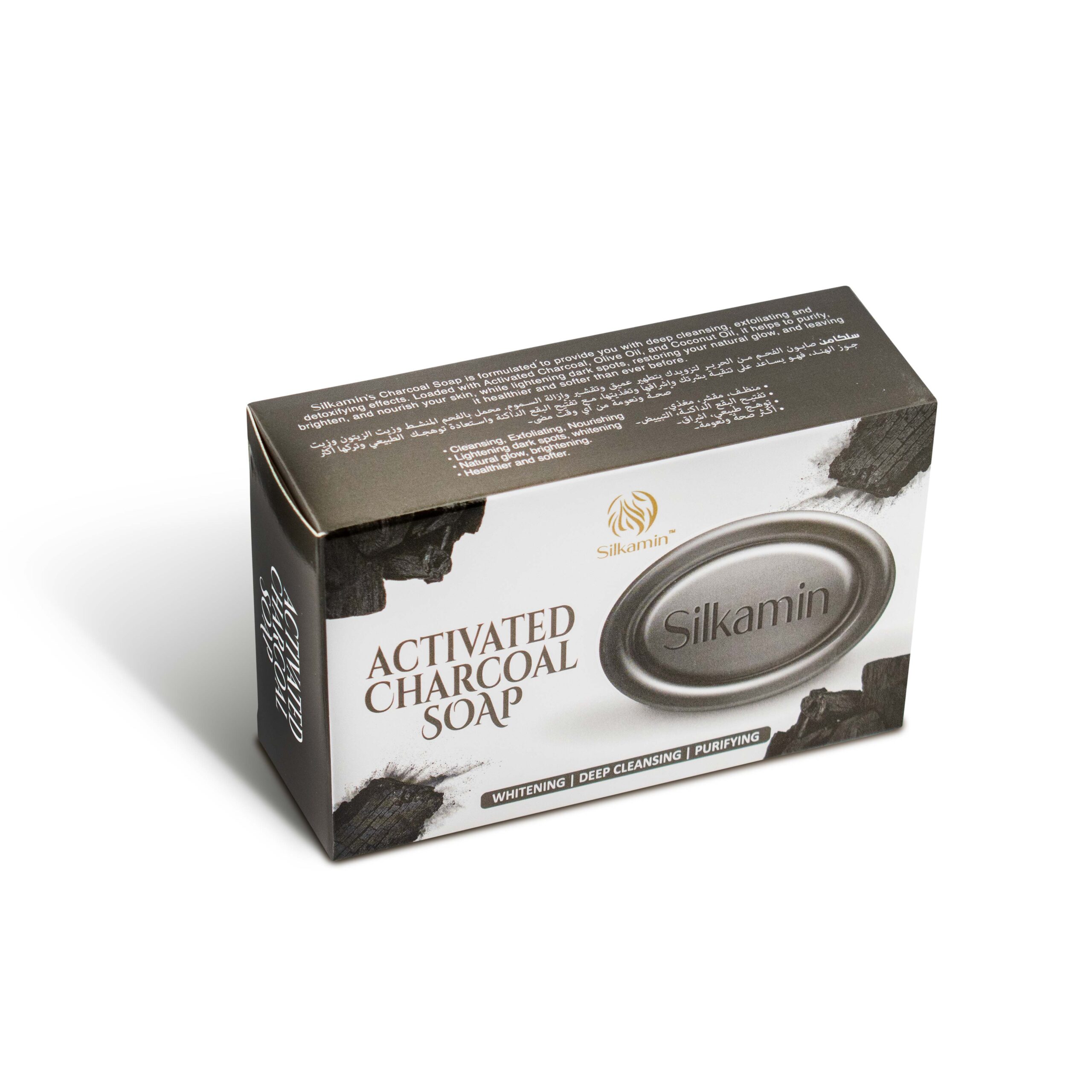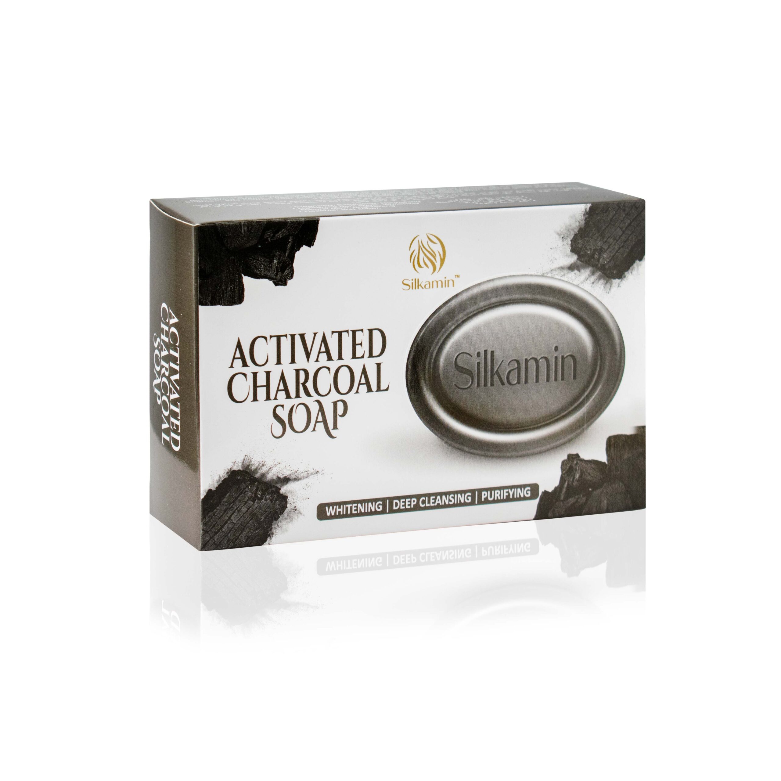 SILKAMIN Activity Charcoal Soap is a gentle yet effective cleanser. It contains activated carbon, a powerful absorbent of toxins and pollutants, to cleanse skin without harshness. The soap leaves your skin feeling fresh, soft, and smooth.